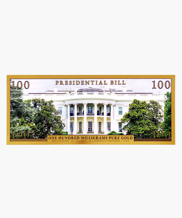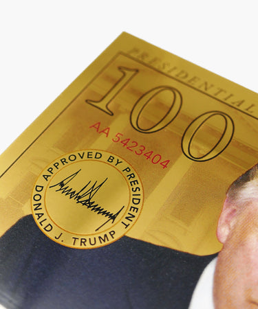 Celebrate the legacy of leadership with this Presidential Gold Aurum® Note, featuring our 45th & 47th President Donald J. Trump. Crafted with 100 milligrams of .9999 pure, ethically sourced gold, this remarkable piece is a testament to both artistry and innovation. Measuring 155.5775mm by 65mm, its sleek design showcases President Trump's image in stunning detail, symbolizing strength and resilience.