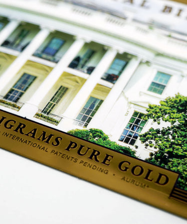 Each Aurum® contains a precise micro layer of 24-karat gold protected by additional layers of durable polymer. This technology is used to create a way to physically own gold that is flexible, durable, and easy to store. The high sheen of 24-karat gold is visible from edge-to-edge throughout each bill. This high-quality precious metal provides a warm, lustrous backdrop against which vibrant inks, fine printing, and exquisite artwork shine.